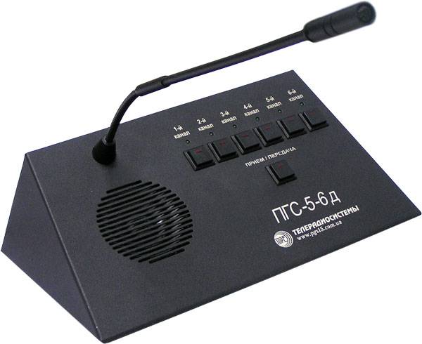 Пульт шестиканальной громкоговорящей связи ПГС-5-6у - настольный пульт диспетчера встроенным усилителем и динамиком выходной мощностью 5 Вт. Используется в качестве рабочего места диспетчера внутри помещений.