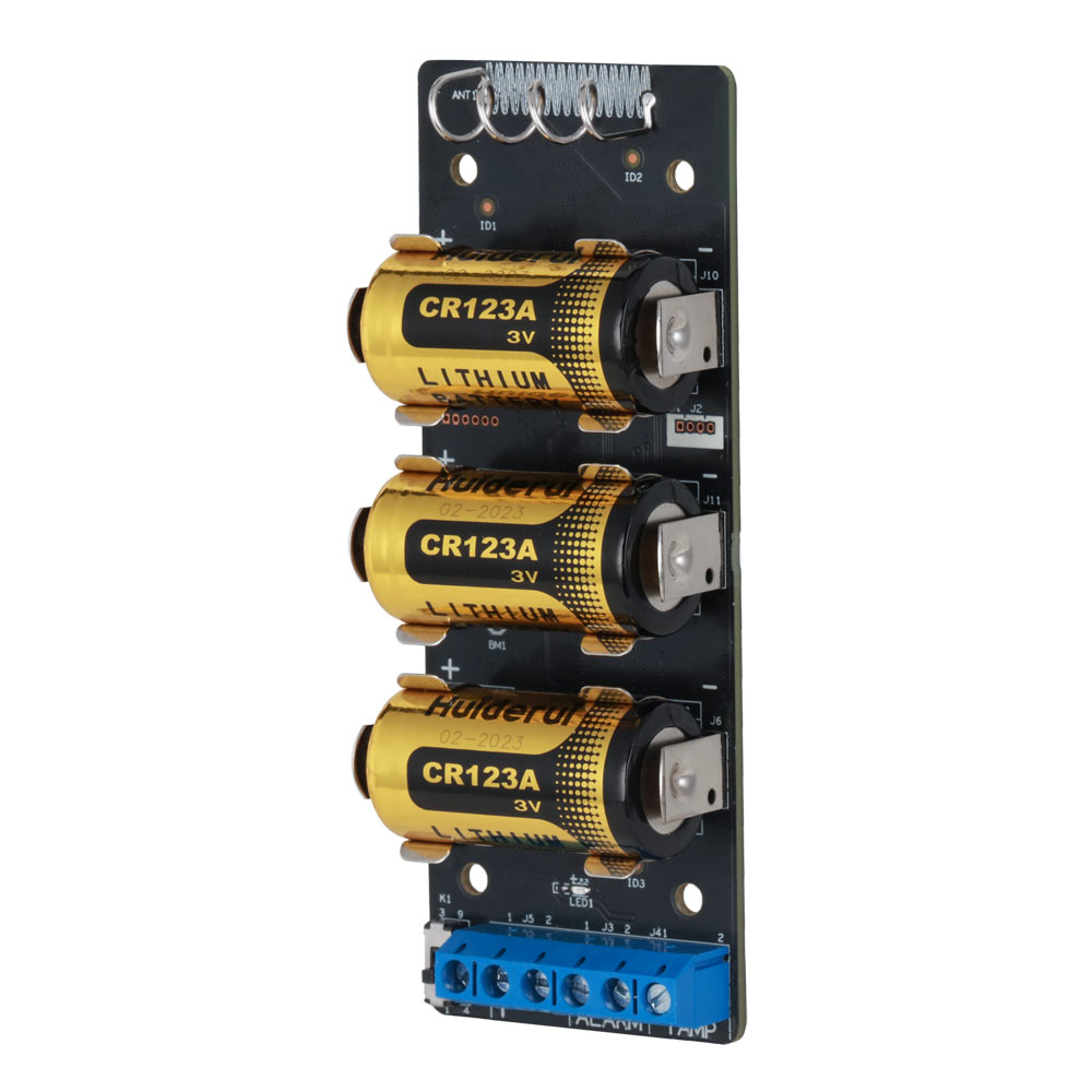 Один из тревожных входов используется для подключения датчиков противокражной сигнализации сторонних производителей. Модуль получает питание от трех батарей и может подавать питание на подключенные к нему датчики.