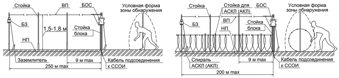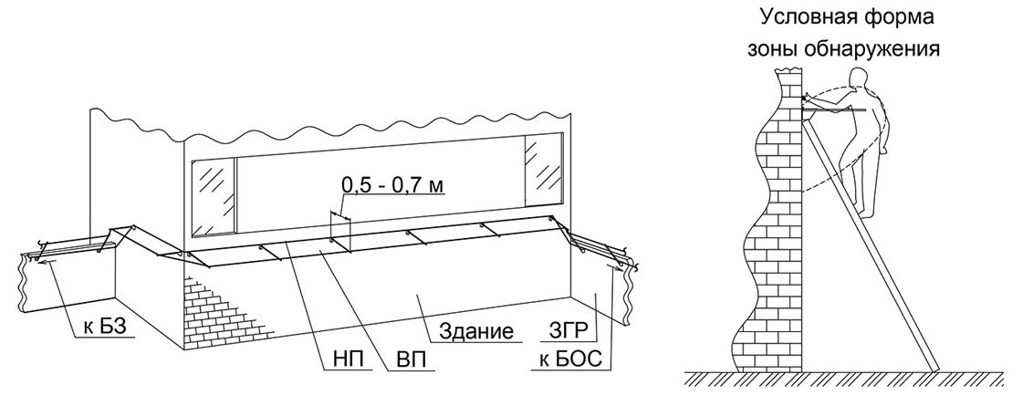 • чувствительным элементом и и верхом заграждения (для вариантов применения 3).