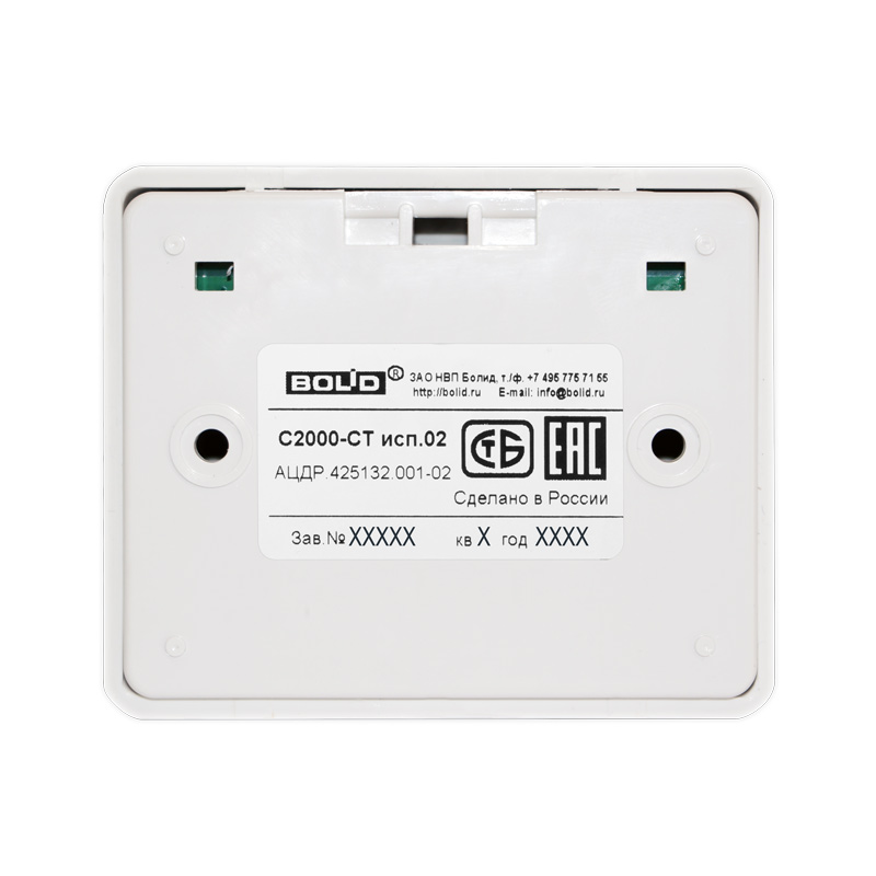 • Извещение "Вскрытие" формируется извещателем путем передачи соответствующего сообщения на "С2000-КДЛ" без визуального отображения при снятии крышки корпуса извещателя.