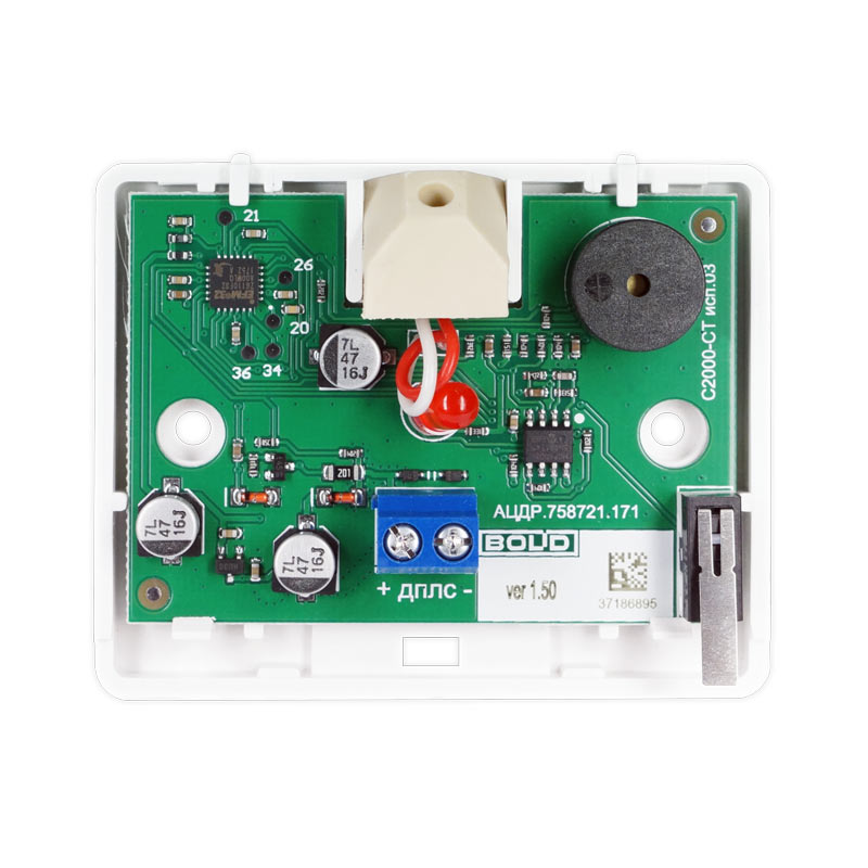 Под съемной крышкой извещателя расположена печатная плата, на которой размещены органы коммутации и управления: