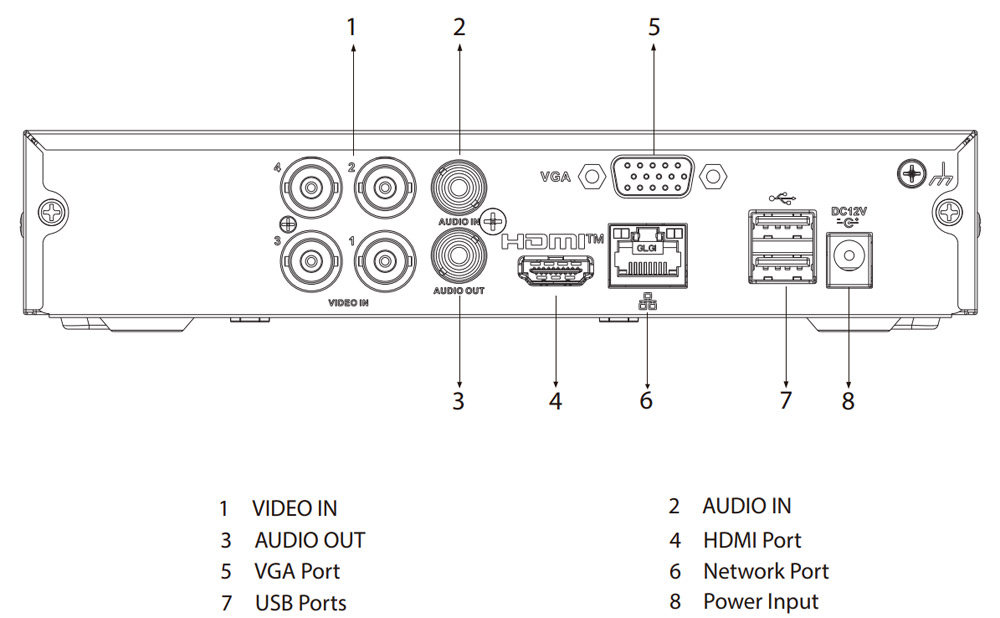 • Аналоговые каналы: 4 BNC (автоматическое определение типа видеосигнала по умолчанию, возможность выбора вручную HDCVI, AHD, TVI и CVBS)