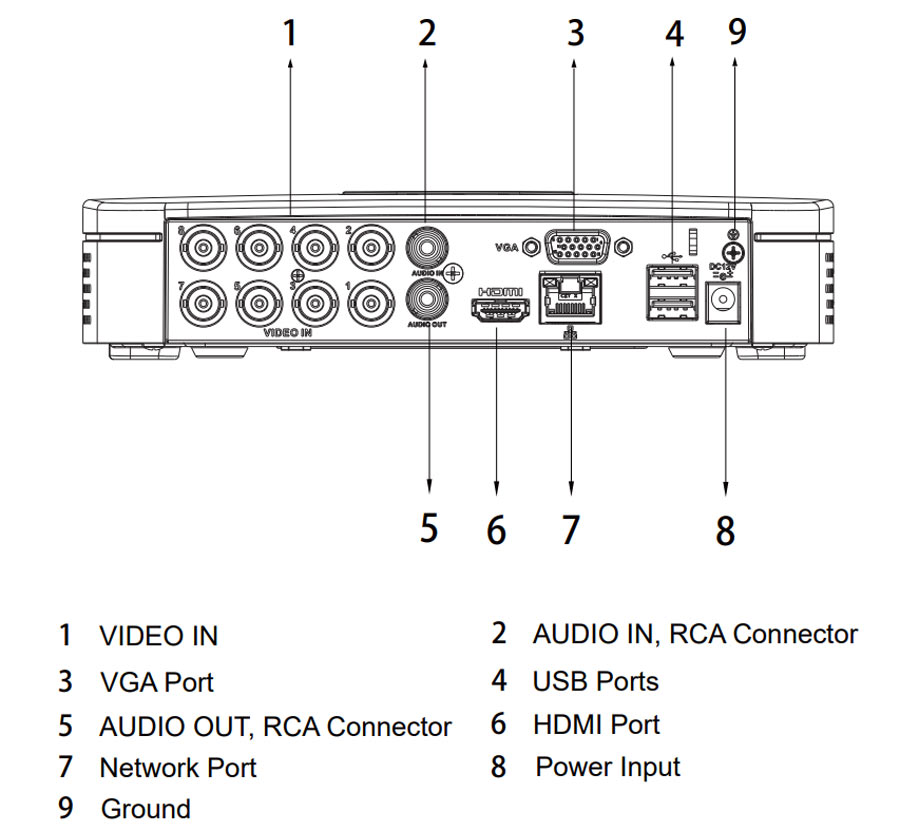 • Аналоговые каналы: 8 BNC (автоматическое определение типа видеосигнала по умолчанию, возможность выбора вручную HDCVI, AHD, TVI и CVBS)