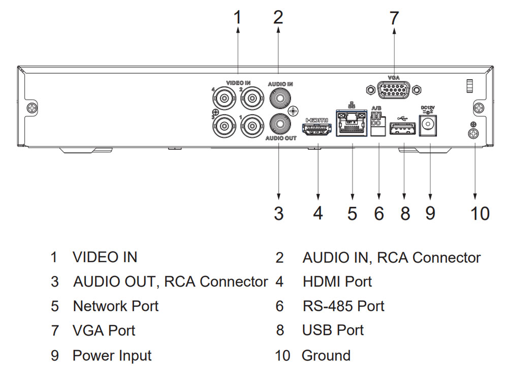 • Аналоговые каналы: 4 BNC (автоматическое определение типа видеосигнала по умолчанию, возможность выбора вручную HDCVI, AHD, TVI и CVBS)