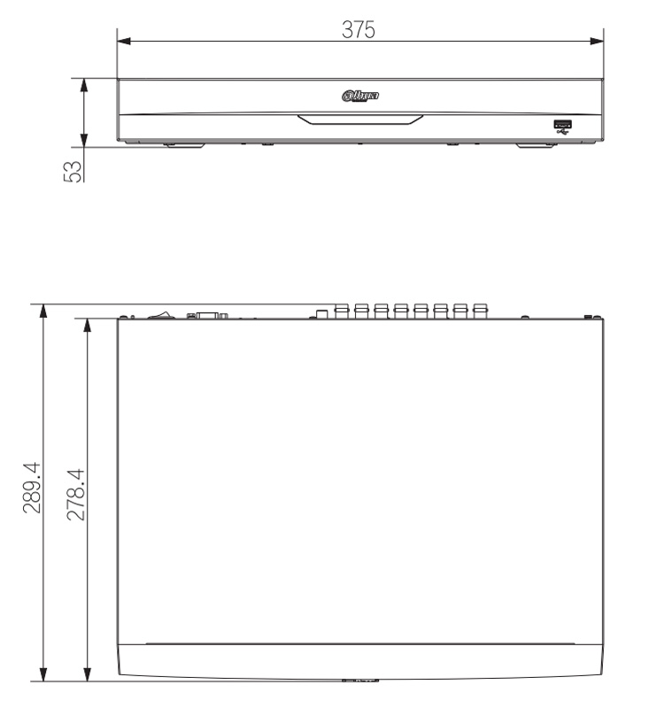• Размеры: 375 мм × 289 мм × 53 мм, 1U