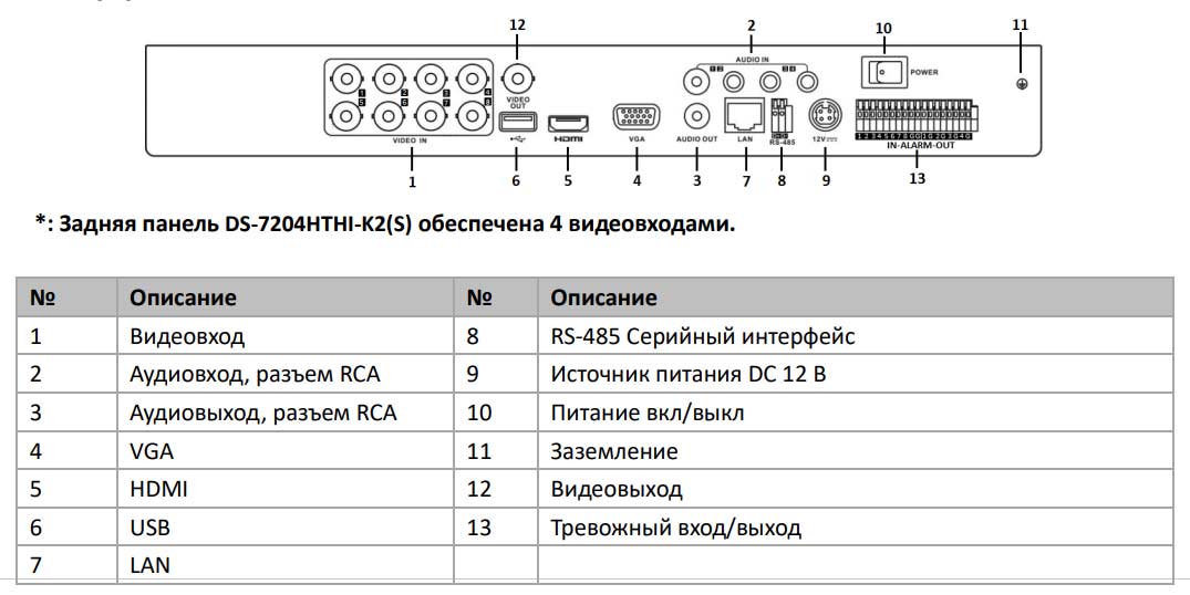 • Аналоговый видеовход: 4 канала. BNC (1.0 В p-p, 75 Ом), поддержка соединения с помощью коаксиального