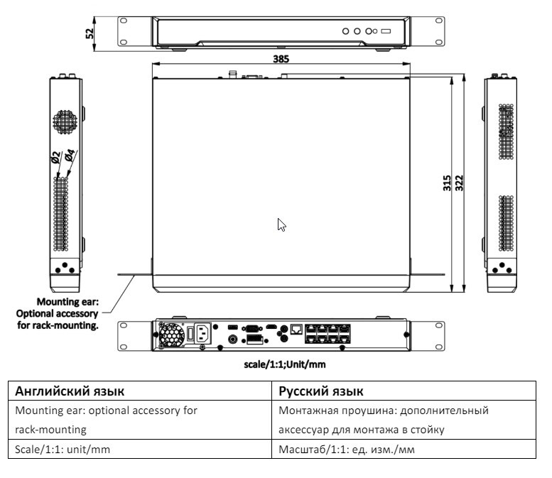 • Потребляемая мощность: ≤ 15 Вт (без HDD и PoE выкл.)