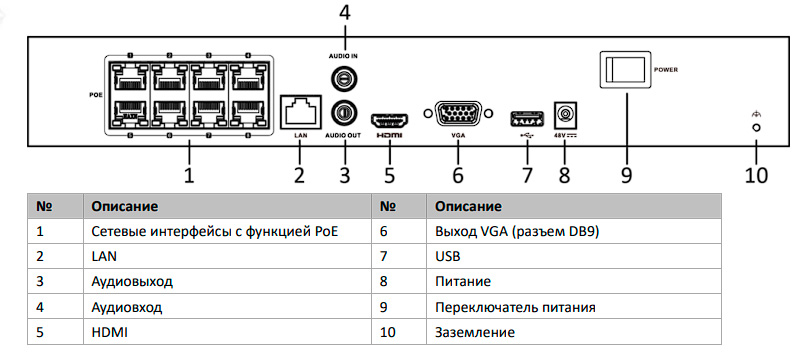 • Потребляемая мощность: ≤ 10 Вт (без HDD и PoE выкл.)