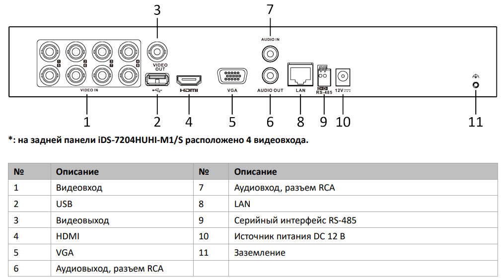 3. Количество аудиовходов и тревожных входов / выходов указано для справки. Параметры аудиовходов и тревожных входов / выходов указаны на этикетке. Например, «4A + 8 / 4ALM» означает, что устройство имеет 4 аудиовхода, 8 тревожных входов и 4 тревожных выхода. Если устройство имеет только 1 аудиовход, описание может не быть указано на этикетке.