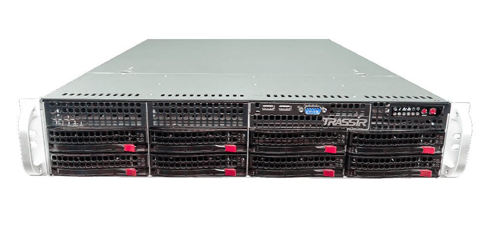 TRASSIR NeuroStation рассчитан на подключение до 128 IP-камер — без ограничений по разрешению и скорости трансляции. Поддерживает кодеки Н.265+, Н.265, Н.264, MPEG4, MJPEG. Принимает и обрабатывает изображения с других серверов TRASSIR (Offload-аналитика). Оборудован тремя независимыми видеовыходами — DisplayPort, D-SUB и HDMI — для подключения трех мониторов (в зависимости от модификации количество видеовыходов может меняться). На передней панели расположены два порта USB 2.0, на задней — четыре USB 3.0 и один USB 3.1, один USB 3.1 type-C. На борту два сетевых порта RJ-45, восемь SATA-интерфейсов для подключения HDD, PS/2 — для клавиатуры.