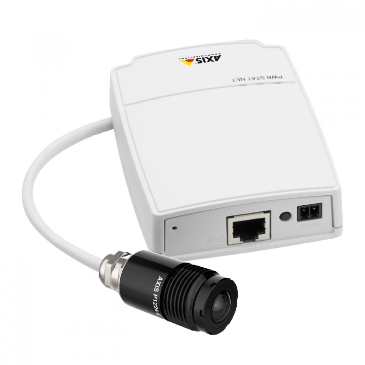 AXIS P1224-E — это миниатюрная камера с разрешением HDTV 720p и большим углом обзора в горизонтальном направлении (145°). Модель идеально подходит для малозаметного обзорного видеонаблюдения в банках, возле банкоматов и кассовых терминалов, в магазинах, гостиницах и возле архитектурных сооружений. Камера состоит из двух частей: оптического блока с защитой класса IP66 (объектив и датчик изображения) и основного модуля. Оптический блок можно установить внутри помещения или на улице, в том числе — в ограниченном пространстве, например, в дверном проеме, на потолке, стенах и в лифтах, при этом основной модуль может находиться в помещении на расстоянии до 8 м от оптического блока. Основной модуль имеет слот для карты памяти и поддерживает формат H.264, Motion JPEG, видеодетектор движения, сигнал тревоги при несанкционированных действиях, порты ввода-вывода для подключения внешних устройств и технологию Power over Ethernet.
