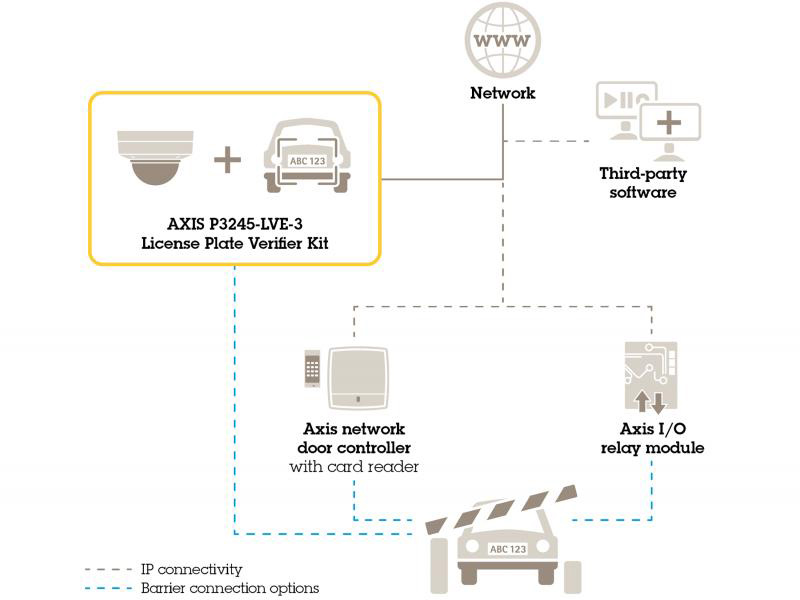 Приложение AXIS License Plate Verifier поддерживает управление различными уровнями безопасности — от базового контроля на въезде/выезде до расширенного управления доступом. Программа может считывать номерные знаки автомобилей, движущихся на скорости до 70 км/ч, что делает ее идеальным выбором для считывания номерных знаков медленно движущегося транспорта. Приложение поддерживает тесную интеграцию с другими продуктами Axis и имеет встроенную поддержку дверного контроллера AXIS A1001 Network Door Controller. Это означает, что вы можете легко интегрировать его с системами управления учетными данными и установить считыватель карт в качестве резервного инструмента в случае, если вам требуется более продвинутое решение для контроля доступа. Кроме того, обработка и хранение данных выполняются непосредственно в камере, поэтому вам не потребуются дорогостоящие серверы; также это снижает требования к пропускной способности.
