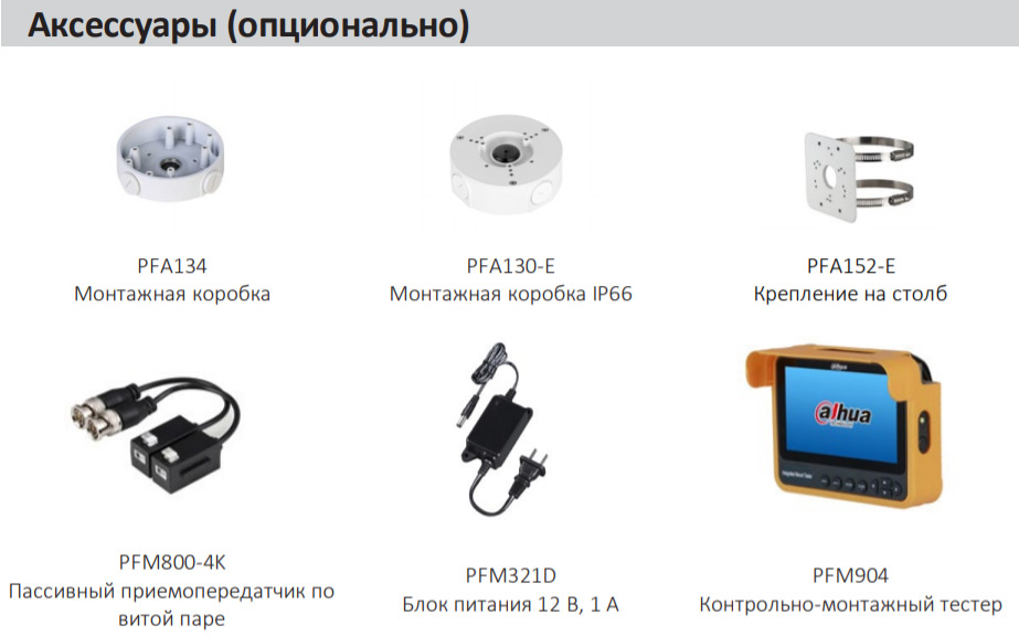 - HDCVI: 25 к/с @ 5M, 4M, 1080p