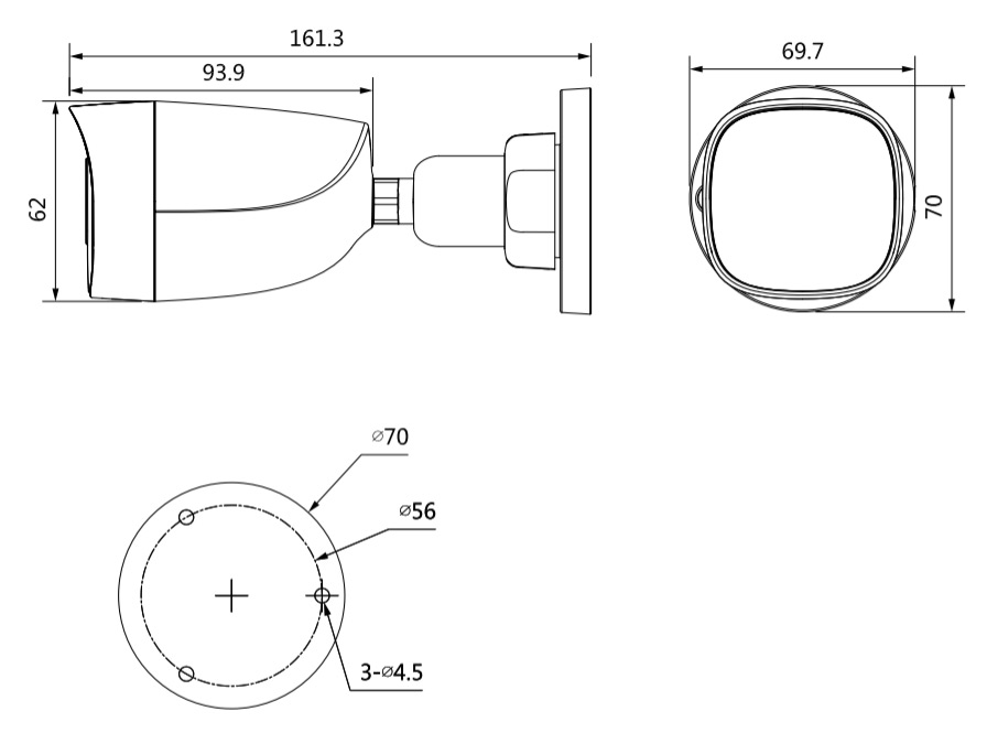 • Размеры: 161.3 мм × 69.7 мм × 70 мм