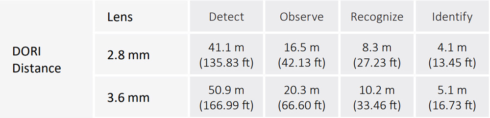 - 3.6 mm: H: 83°; V: 48°; D: 105°