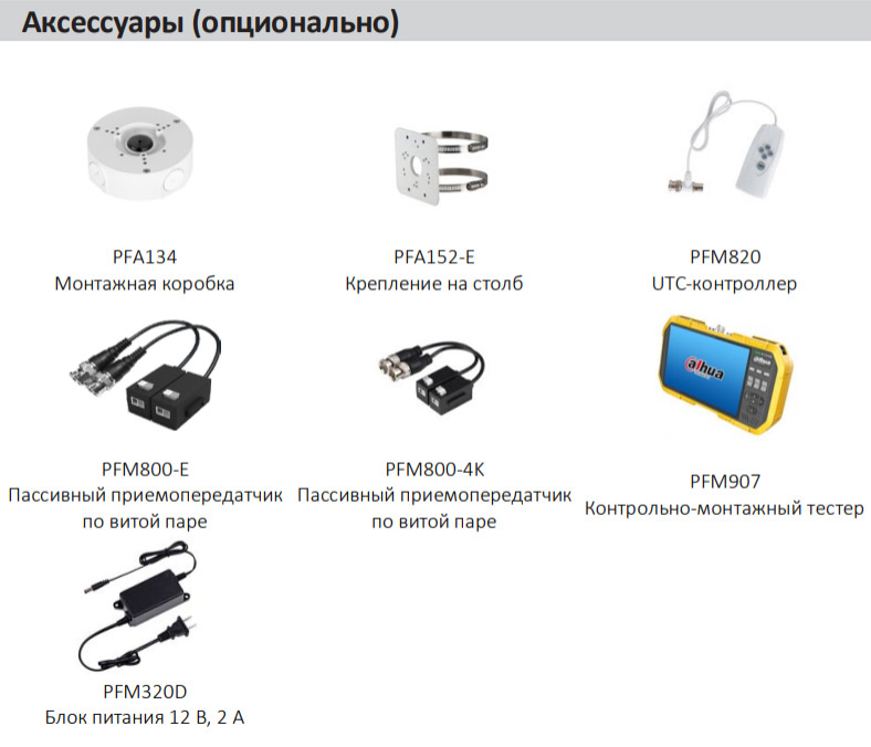 Видеокамера поддерживает HDCVI, CVBS и еще 2 распространенных аналоговых HD-формата. Формат можно выбрать в экранном меню или при помощи UTC-контроллера PFM820. Благодаря поддержке нескольких форматов видеокамера совместима с большинством существующих видеорегистраторов формата HD/SD сторонних производителей.
