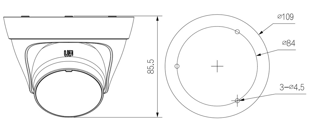 • Чувствительность: 0.03 лк (цвет, F2, 30 IRE); 0.003 лк (ч/б, F2, 30 IRE); 0 лк (ИК-подсветка)