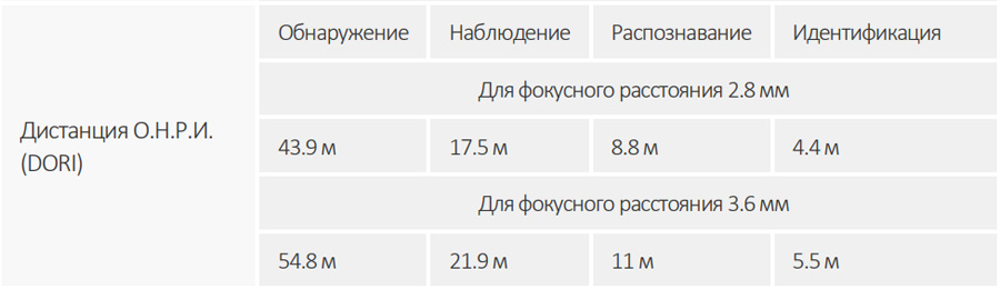 • Фокусное расстояние: 2.8 мм / 3.6 мм
