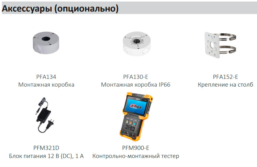 IP67: Видеокамера прошла серию строгих испытаний на стойкость к воздействию влаги и пыли и способна работать 30 минут при погружении в воду на глубину 1 м. Широкий диапазон напряжений: Для входного напряжения видеокамеры допускается отклонение ±30%, благодаря чему она хорошо подходит для уличного применения с нестабильными условиями электропитания.