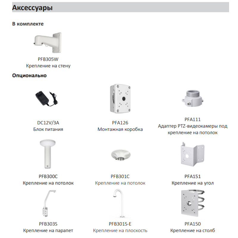 • Скорость перехода по предустановкам: Поворот: 240°/c, Наклон: 200°/c