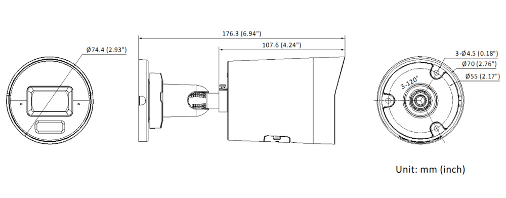 Камера имеет прочный металлический корпус с классом защиты IP67, что делает её устойчивой к пыли, влаге и перепадам температур от -30 °C до +60 °C. Встроенные два микрофона обеспечивают высокое качество звука и возможность записи аудио в режиме реального времени.