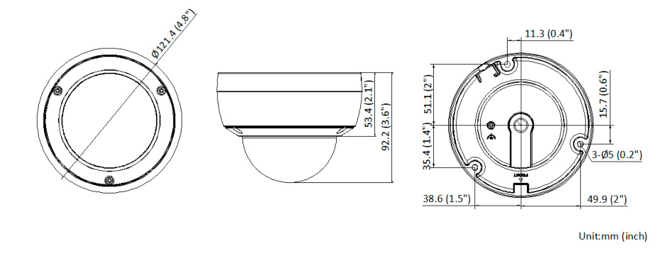 • Размеры: Ø 121.4 × 92.2 мм (Ø 4.8 × 3.6″)