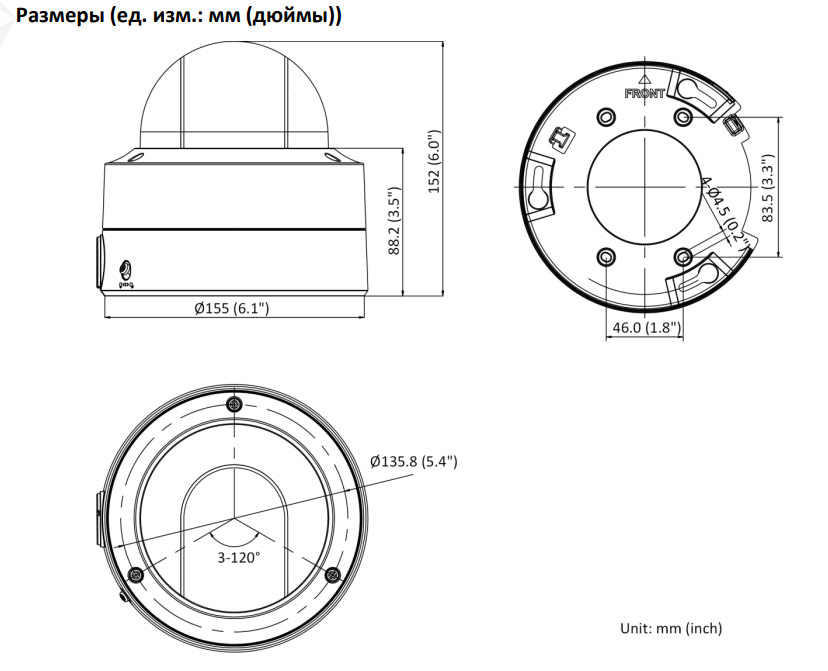 Настройка угла обзора камеры | Поворот: 0-355°; Наклон: 0-75°; Вращение: 0-355° |