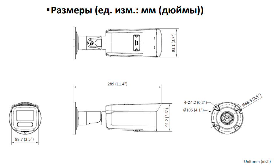 • Размеры: 289 × 93.1 × 91.2 мм (11.4 × 3.7 × 3.6″)