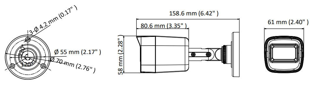 • Размеры: 158 × 61 × 58 мм (6.42" × 2.40" × 2.28")