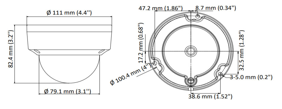• Угол обзора по горизонтали: 106° (2.8 мм)