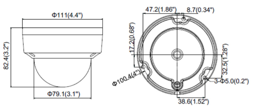 • Угол обзора объектива 102.2° (2.8мм), 79° (3.6мм), 50.8° (6мм)