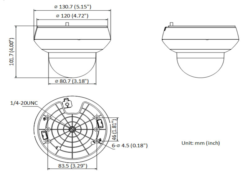 • Размеры: Ø 130.7 × 101.7 (Ø 5.15 × 4.00″)