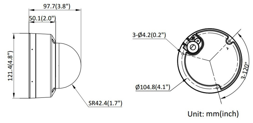 • Размеры: Ø 121.4 × 97.7 мм (Ø 4.8 × 3.8″)