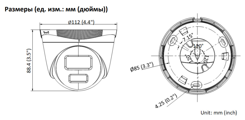 • 4 Мп купольная IP-камера с фиксированным объективом серии ColorVu