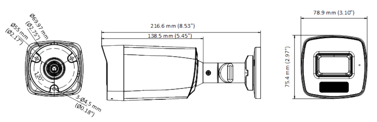 • Размеры: 216.6 × 78.9 × 75.4 мм (8.53 × 3.10 × 2.97″)