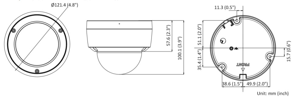 • Потребляемая мощность: DC 12 В, 0.4 A, макс. 5 Вт; PoE: (802.3 af, от 36 до 57 В), от 0.20 до 0.15 A, макс. 6.5 Вт