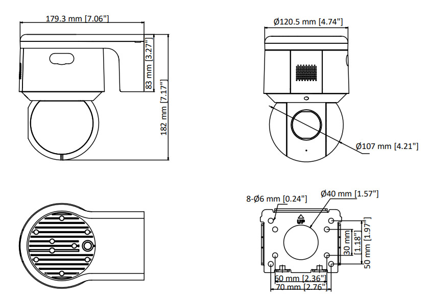 • Размеры: 179.3 × 120.5 × 182 мм (7.06 × 4.74 × 7.16″)