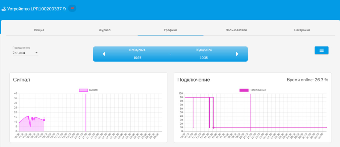 Камера в режиме реального времени сохраняет уровень сотового сигнала (если подключение осуществлено через мобильный интернет) и стабильность соединения.