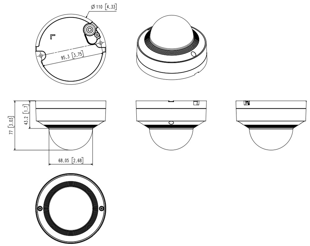 • Доп. аксессуары: SBV-140BW - монтажная коробка, SBP-120HMW - база подвесная, SBD-110GP1 - кабелеввод