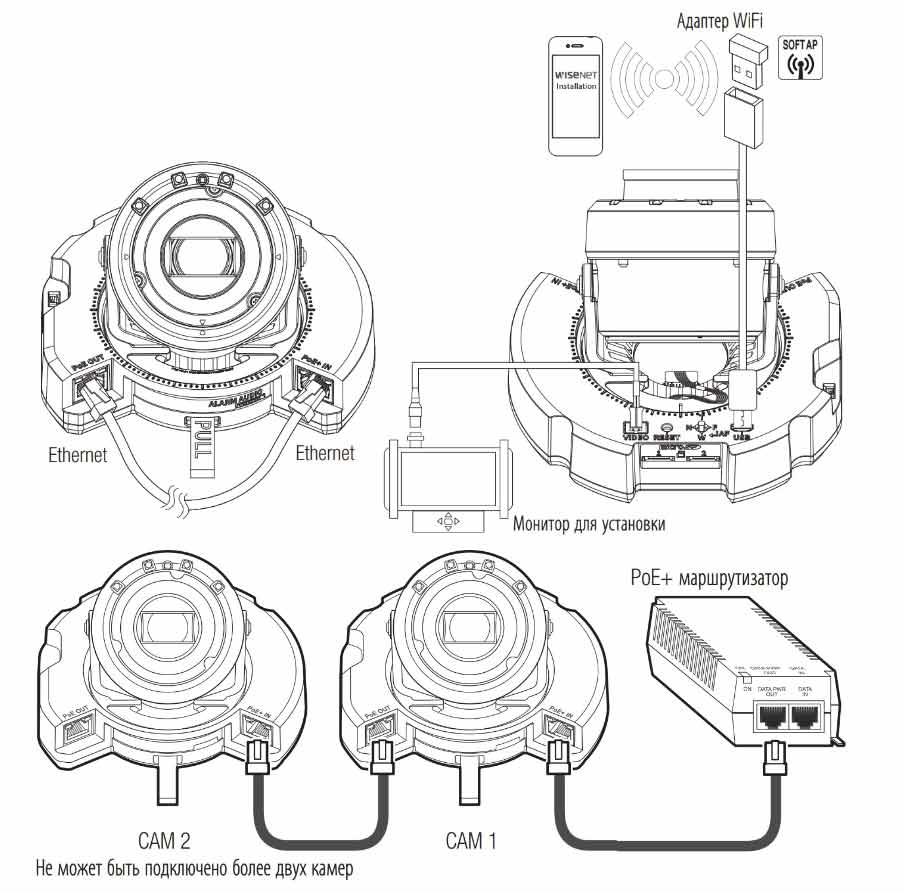 Данная камера является аналогом WISENET XND-6081RV и отличается от нее способом электропитания PoE+ (IEEE802.3at, класс 4) и наличием выхода PoE для подачи питания другим устройствам с макс. потреблением не боле 12.95Вт при удалении до 80 м и соединении кабелем CAT5/5E. Это позволяет подключить 2 PoE камеры на 1 кабель и тем самым снизить временные и финансовые затраты на монтаж видеосистемы или же упростить и ускорить ее модернизацию.