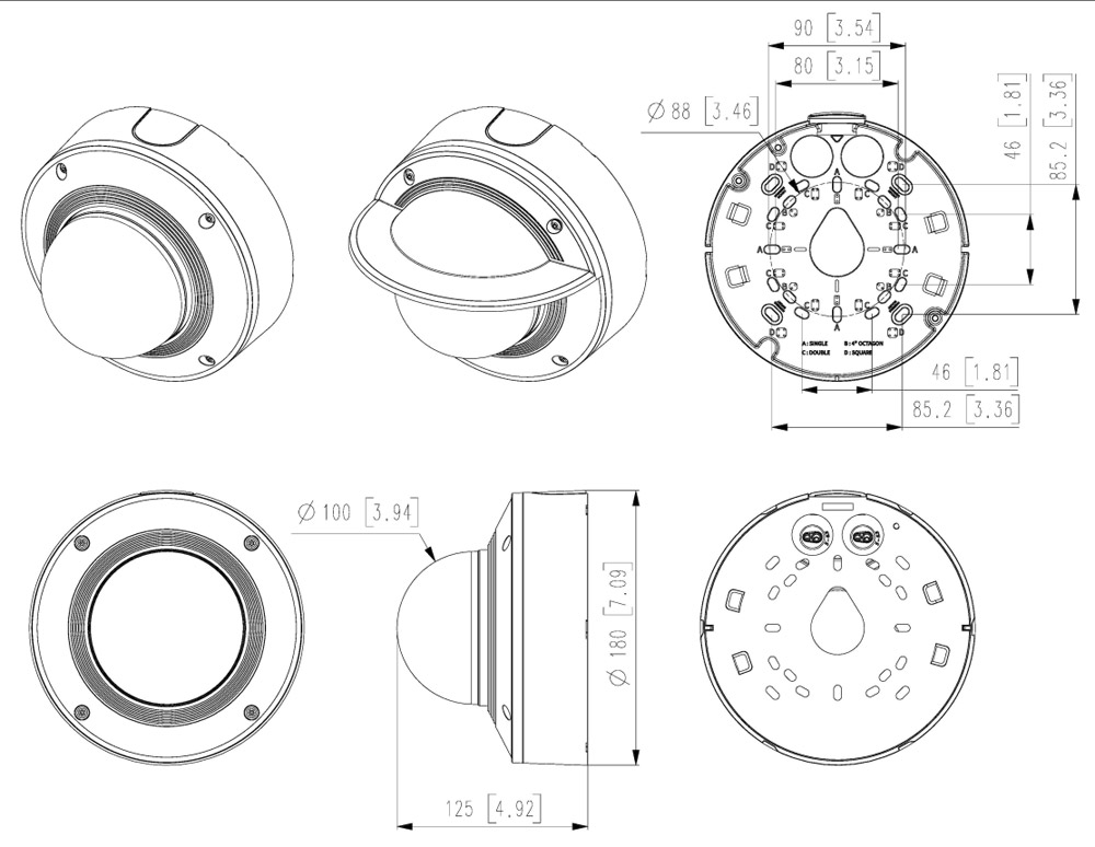 • Диапазон панорамирования/наклона/поворота: 0°~360° / -45°~85° / 0°~355°