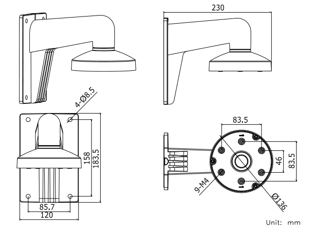 Стена, на которую устанавливается кронштейн, должна выдерживать вес предполагаемой камеры и кронштейна в троекратном размере.