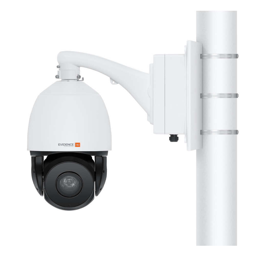Адаптер для установки на трубу PTZ-видеокамер E-серии вместе с настенным кронштейном, входящим в комплект поставки камер.