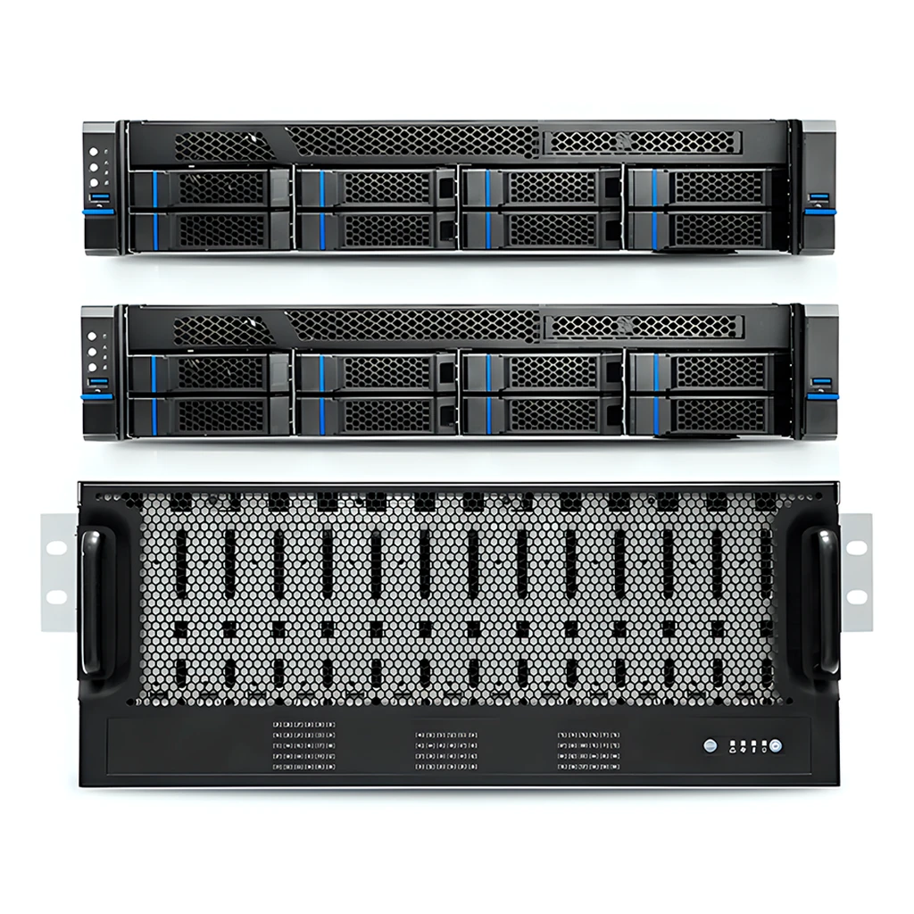 Устройство оснащено широким набором интерфейсов: видеовыходы VGA, DVI и HDMI, современные порты USB всех поколений, включая Type-C, а также сетевые интерфейсы 10 Гбит/с SFP+, обеспечивающие быструю передачу данных. Благодаря возможности подключения нескольких блоков питания и резервированию, устройство обеспечивает высокую надежность и устойчивость к отказам даже при интенсивной нагрузке.