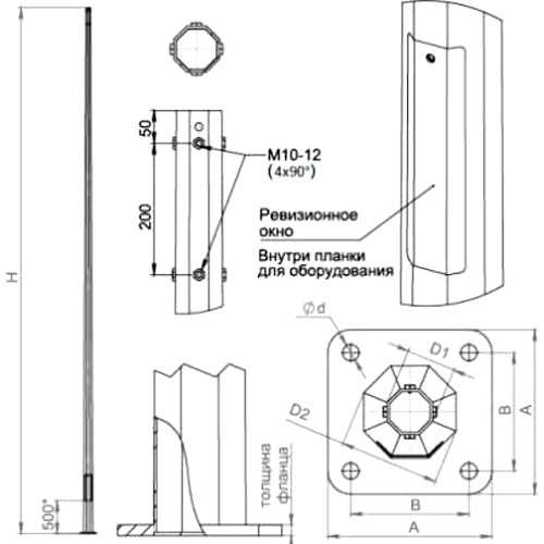 Опоры граненные конические фланцевые ОГК и ОГКл устанавливаются на фланец закладной детали фундамента.