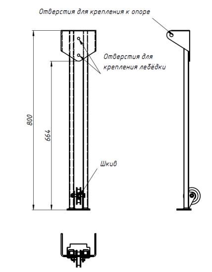 Кронштейн фиксируется на опоре с помощью шпильки и установленной на нем лебёдкой выполняется складывание опорыдля установки.