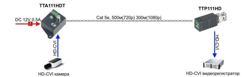 Активный передатчик TTA111HDT предназначен для передачи аналогового видеосигнала высокой четкости (HD-CVI / HD-AHD) на расстояние до 500м с разрешением 720p, с разрешением 1080p - до 300м.