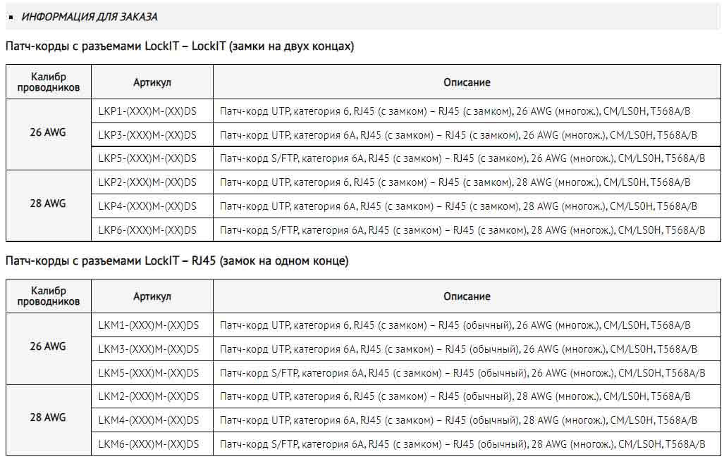 Обозначение (XXX) – длина патч-корда в метрах:
