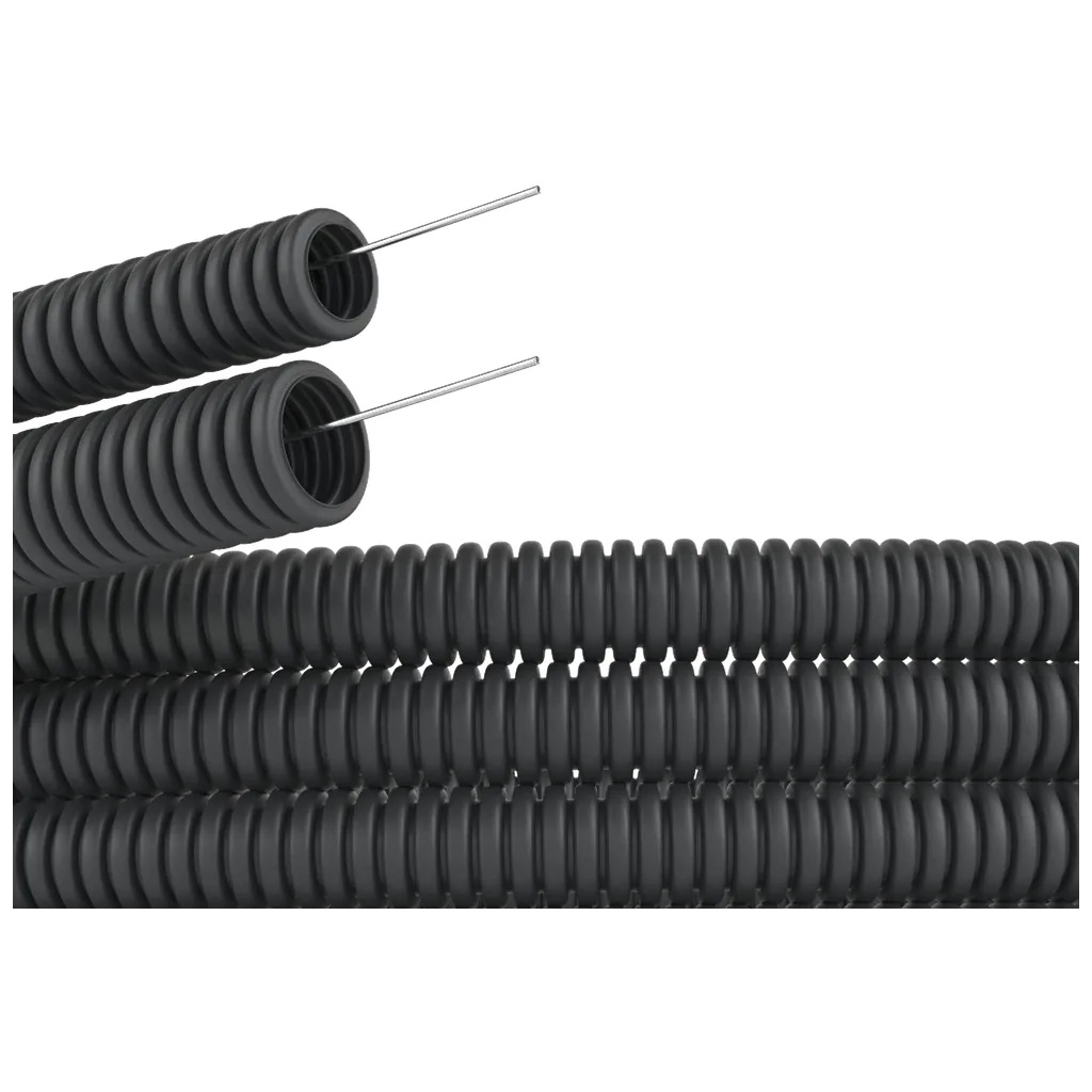 Диаметр – 32 мм. Цвет - черный. Материал – полиэтилен низкого давления (ПНД). Легкие гибкие гофрированные трубы имеют широкий диапазон температур монтажа и эксплуатации: - от -40 °С до +90 °С. Длина - 25 метров.