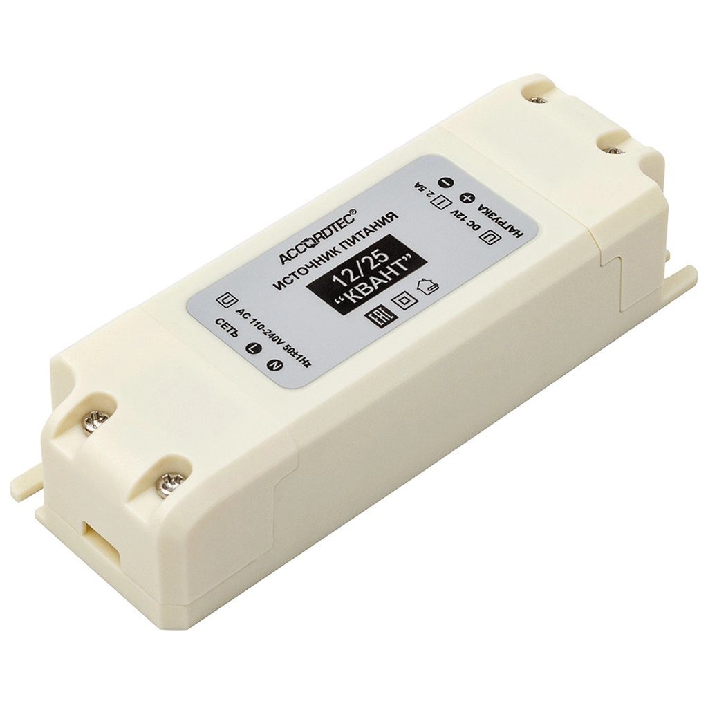 Источник стабилизированного питания AccordTec AT-12/25 КВАНТ – это надежное устройство, предназначенное для обеспечения стабильного и безопасного электропитания оборудования систем безопасности и автоматизации. Модель создана для работы в составе видеонаблюдения, СКУД, охранно-пожарных сигнализаций и систем контроля доступа. Благодаря широкому диапазону входного напряжения и встроенной функции регулировки выходного параметра, устройство гарантирует корректную работу подключенных нагрузок даже при колебаниях в сети.